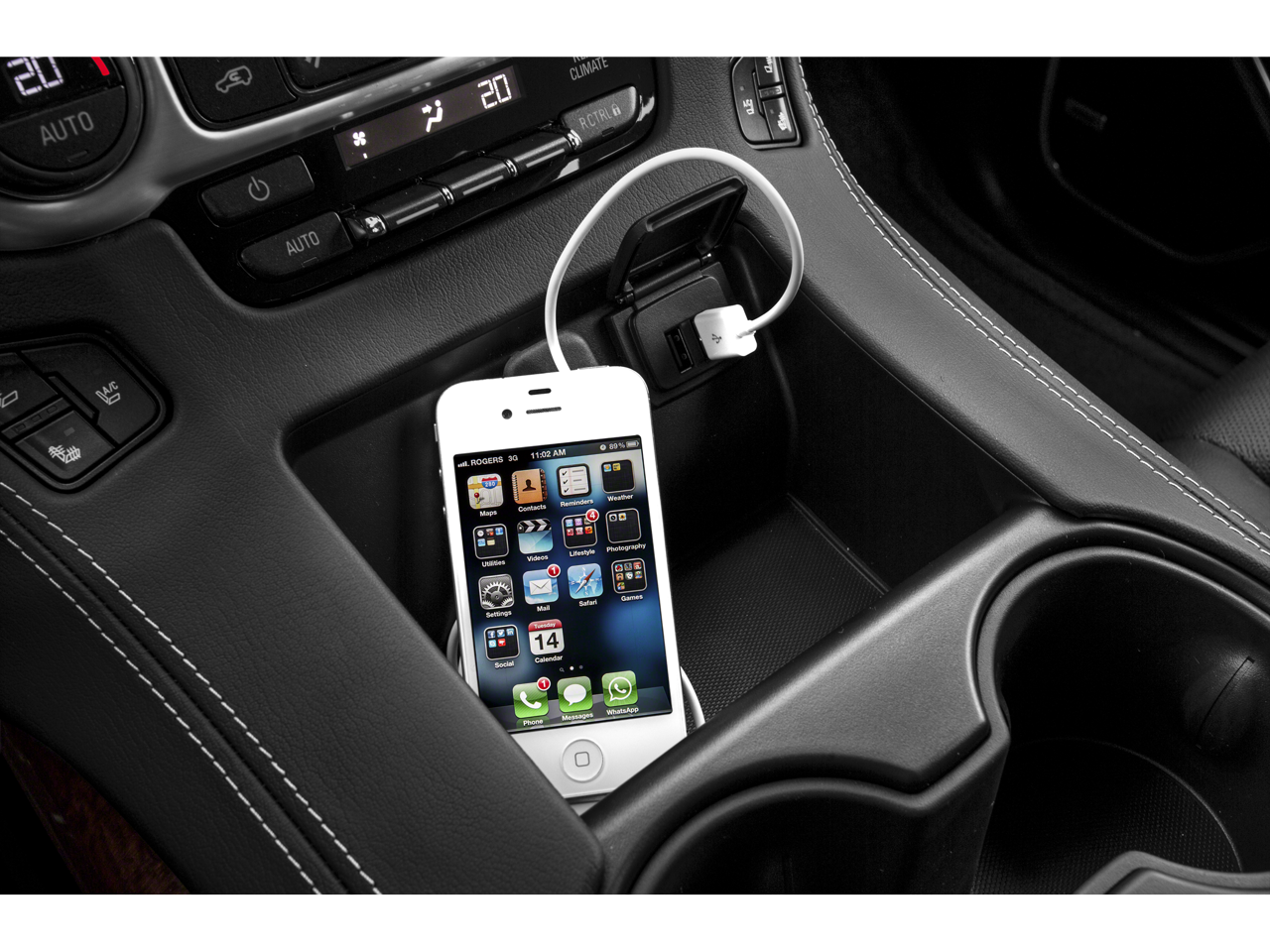 - Audio system, 8" Diagonal Color Touch Screen with IntelliLink includes New text message alerts and Siri Eyes Free functionality through voice command, AM/FM/SiriusXM/HD with USB ports, auxiliary jack, SD card slot, Bluetooth® streaming audio for music and most phones, hands-free smartphone integration, Pandora Internet radio and voice-activated technology for radio and phone, and an articulating screen with hidden storage. Includes 5 USB ports, 1 auxiliary jack and 1 SD card reader (See "gmtotalconnect.com" for phone compatibility information.)
